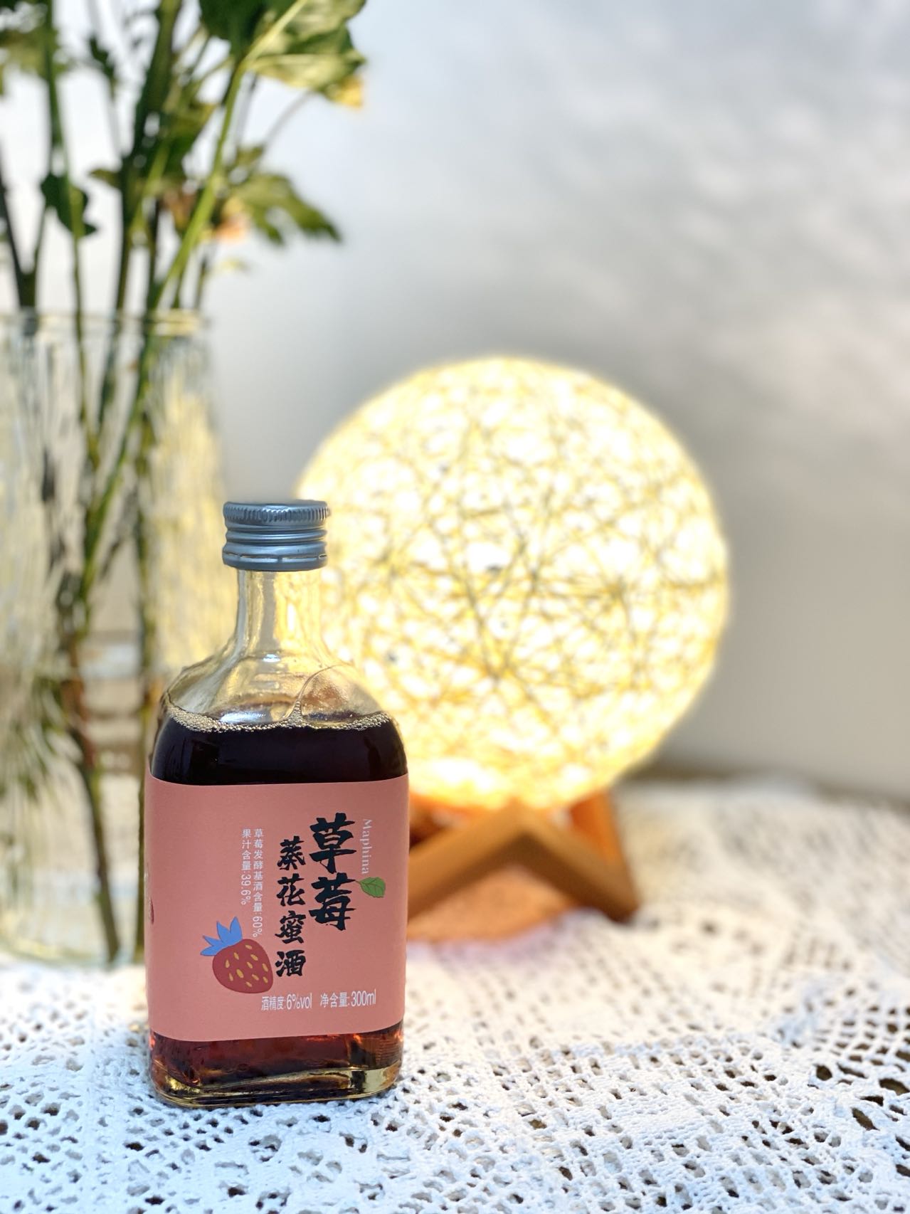 用破碎机将洗净的草莓破碎,并将果梗和萼片从果浆中分离出去。把果浆倒入发酵桶,每 100 公斤加入 6% 的亚硫酸 100 克,以杀灭果实表面的微生物和空气中的杂菌。